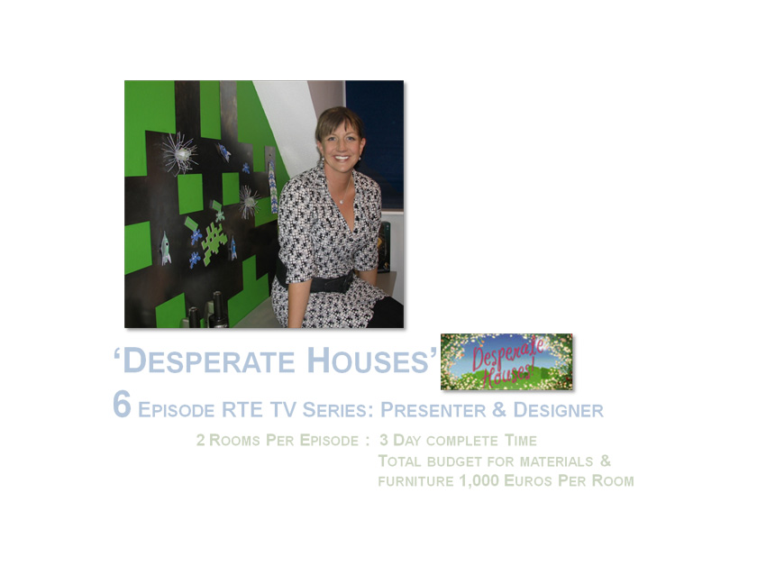 Series presenter and designer of The RTE television series called "Desperate Houses" (watch the show's highlights here) which aired for the first time in the autumn of 2008. It has since been re aired twice.